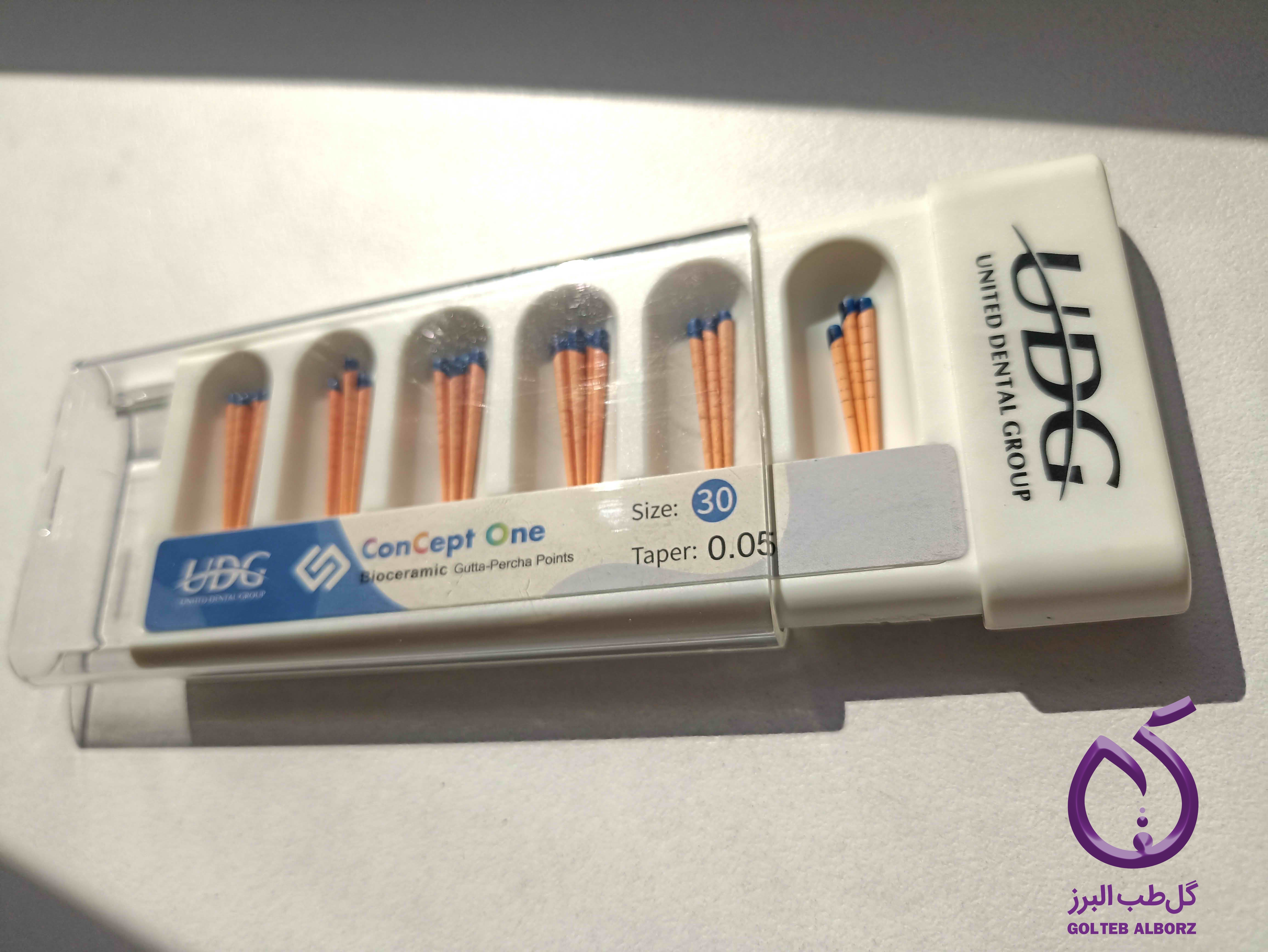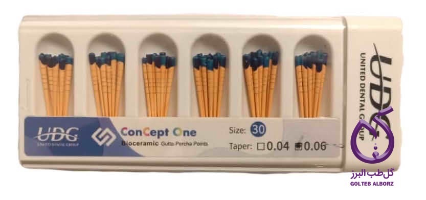 گوتا پرکاهای Endo Gutta Percha برند UDG، محصول شرکت Bondent، از مرغوبترین مواد ارگیانیک هستند که طبق استانداردهای ISO در تیپرها و سایزهای متنوع 30×6٪، 35×4٪، 40×4٪ و 40×6٪ عرضه میشوند. این مخروطها از ترکیبات بیوسرامیک و مواد ارگانیک با زیستسازگاری بالا تهیه شده و انعطافپذیری و تطابق عالی با دیواره کانال ریشه دارند. برای حصول سیل سهبعدی بهینه در آبچوریشن، تکنیک سینگلکُــن توصیه میشود.